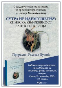 „Sutra ne idem u šetnju: kineska književnost, zapisi, poezija“, priredio: Radosav Pušić.